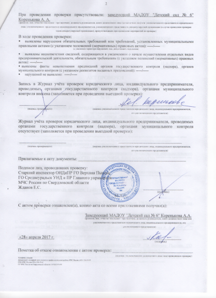 предписание МАДОУ ДС 6 4924 СЭБ (3) Документ подписан электронной подписью Серийный номер 294690421595703939189969587970239985033448730019 Заведующий Чужова Нина Михайловна Дата подписания документа 13.06.2024 13:04:59 (скачать) (посмотреть) (текст документа)